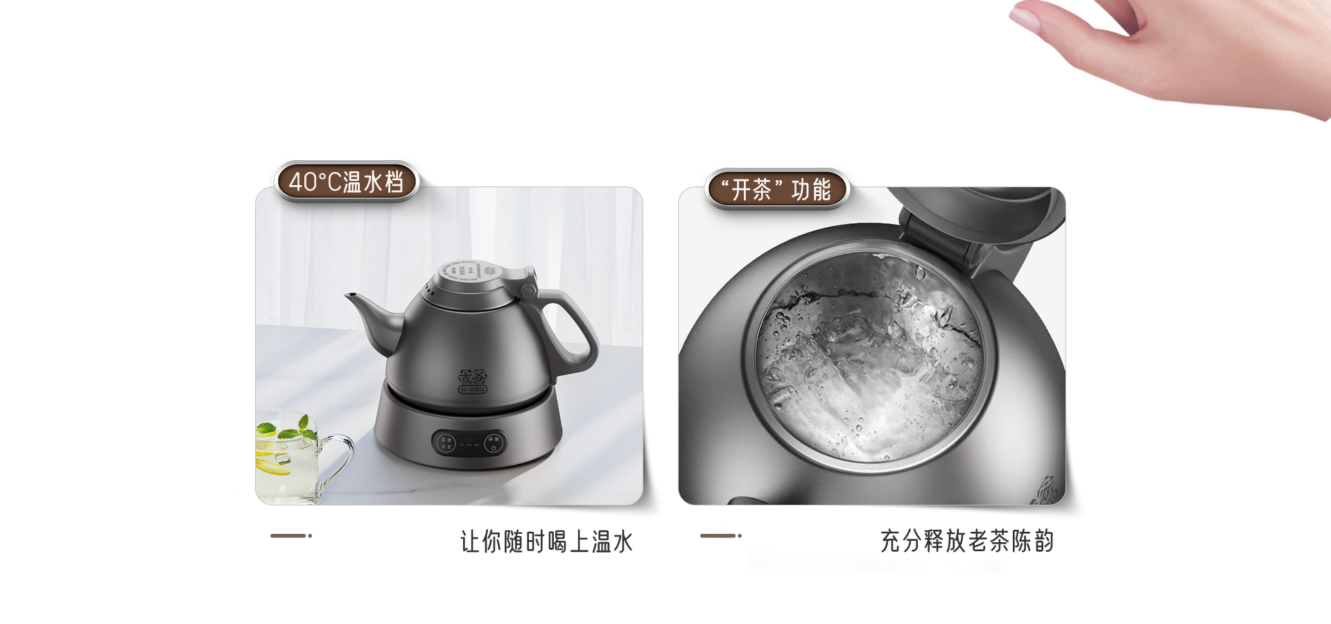 水燒開(kāi)后,在水溫將要下降時(shí),以星點(diǎn)的炭火將水溫維持著(吉谷是靠芯片運(yùn)算,根據(jù)水量、環(huán)境氣溫、海拔高度的不同,變頻調(diào)節(jié)加熱功率),此時(shí)可看到水里冒著一個(gè)個(gè)小氣泡,這就是傳說(shuō)中的“蝦眼水”恒溫。