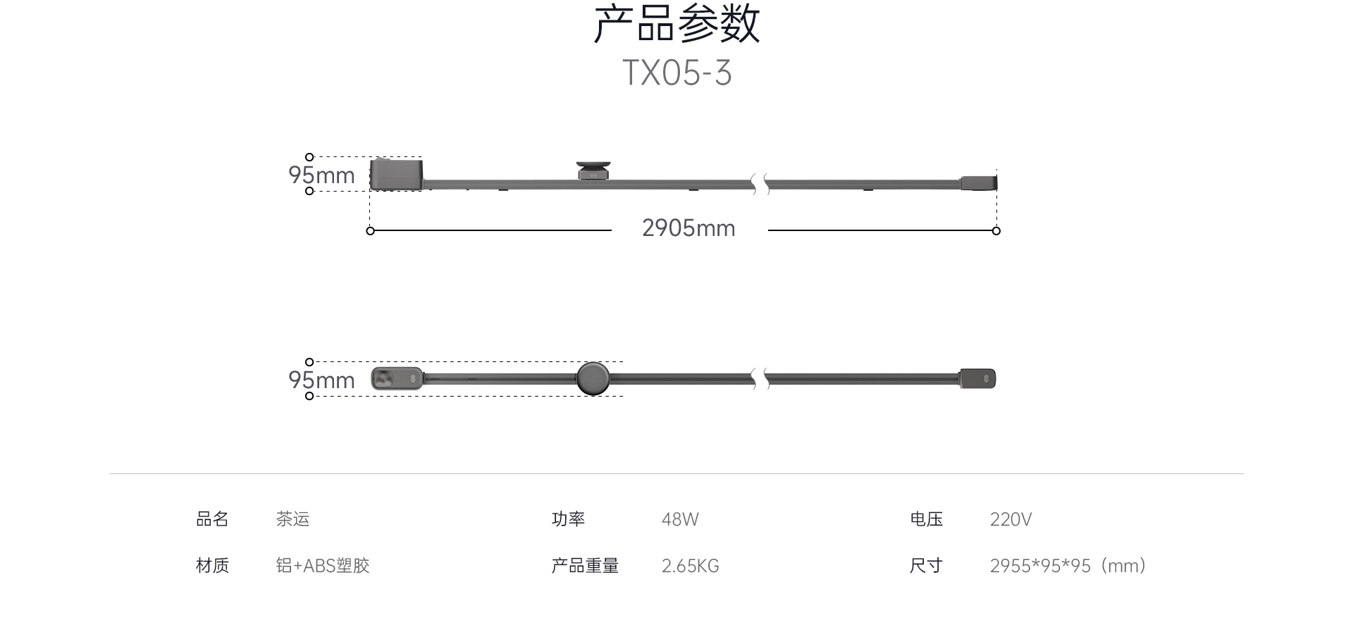 - 尺寸(mm):2905*95*95